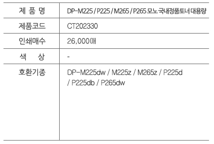 BLACK, 26000매, M225DW/M225Z/M265Z/P225D/P265DW/P225DB, 경신전용