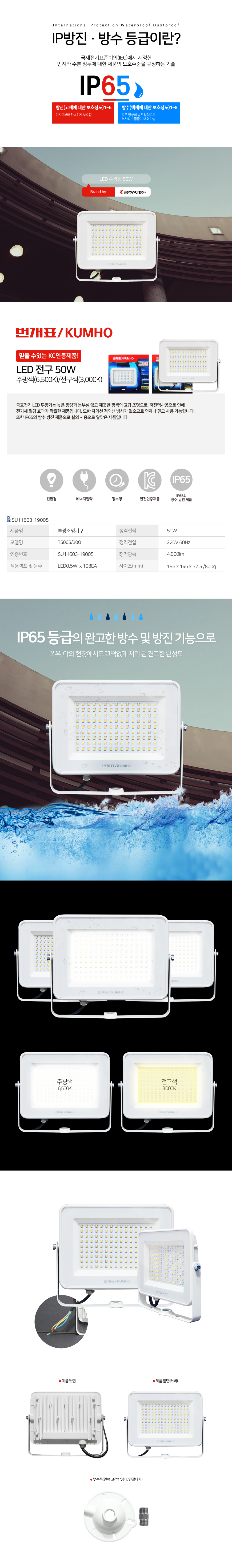 금호전기 번개표 LED투광등 IP65 공장등 간판등 50W 주광색(6,500K)
