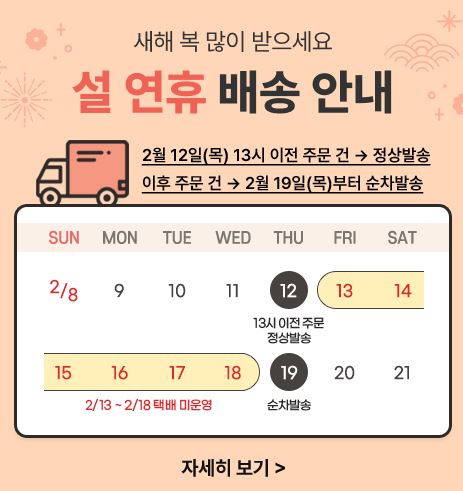 설 연휴로 인한 배송 일정을 안내 드립니다. 이용에 참고 부탁 드립니다.